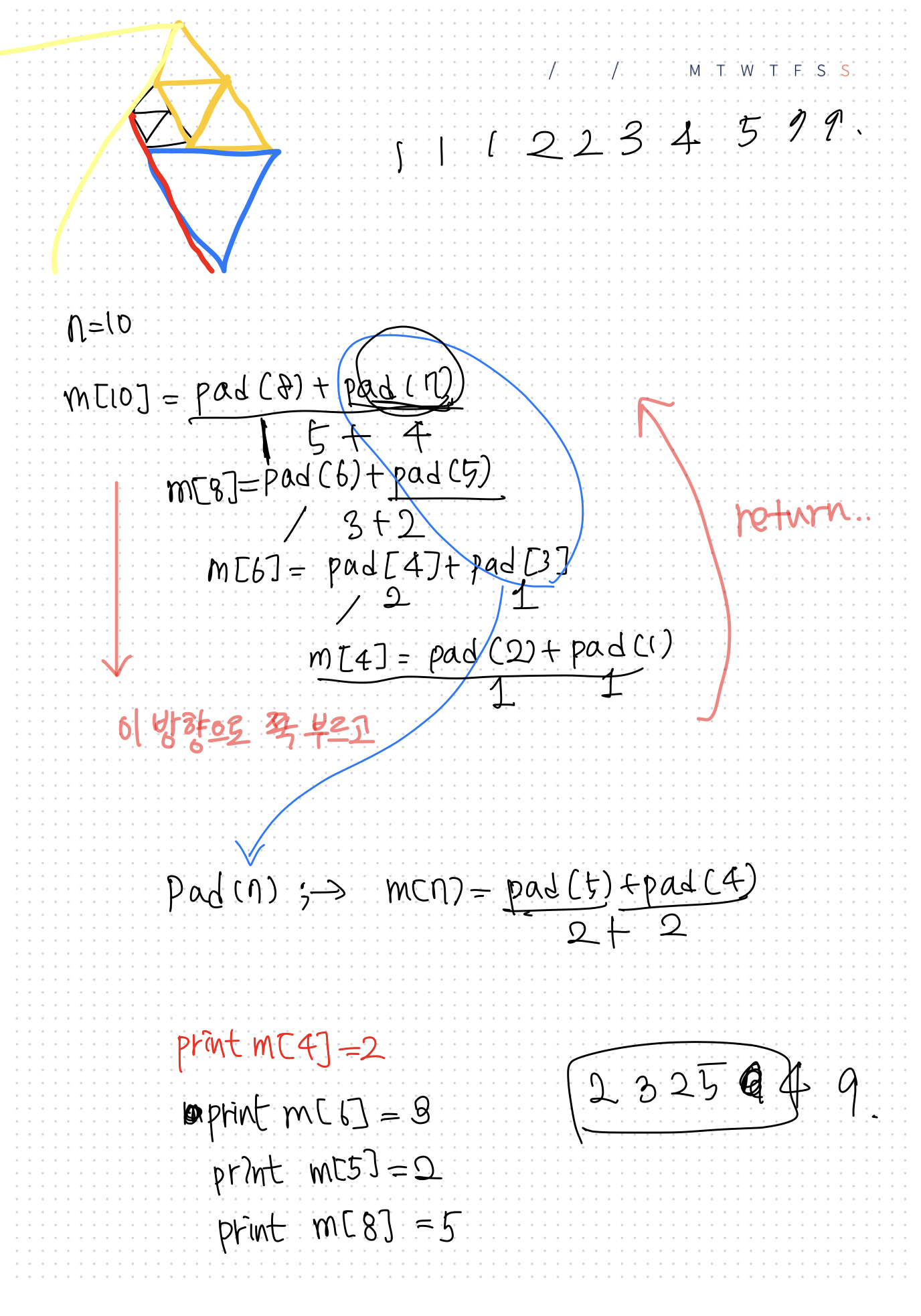 동적계획법 알고리즘 마인드를 떠올리기 힘들면 피보나치 수열, 파도반 수열을 떠올려 보자.