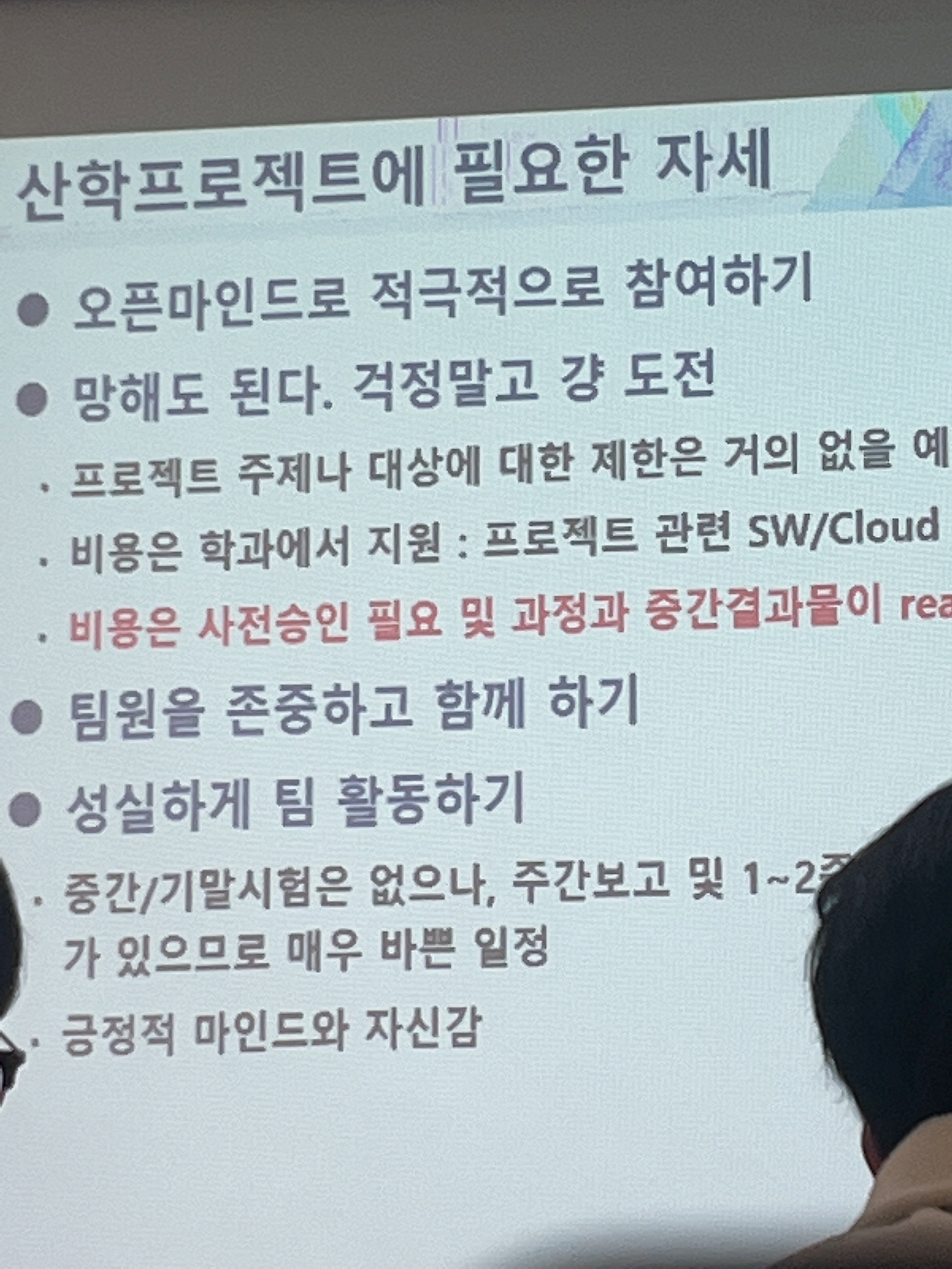 나는 현재 3학년이고 1학기에 산학 프로젝트 수강을 선택했다.