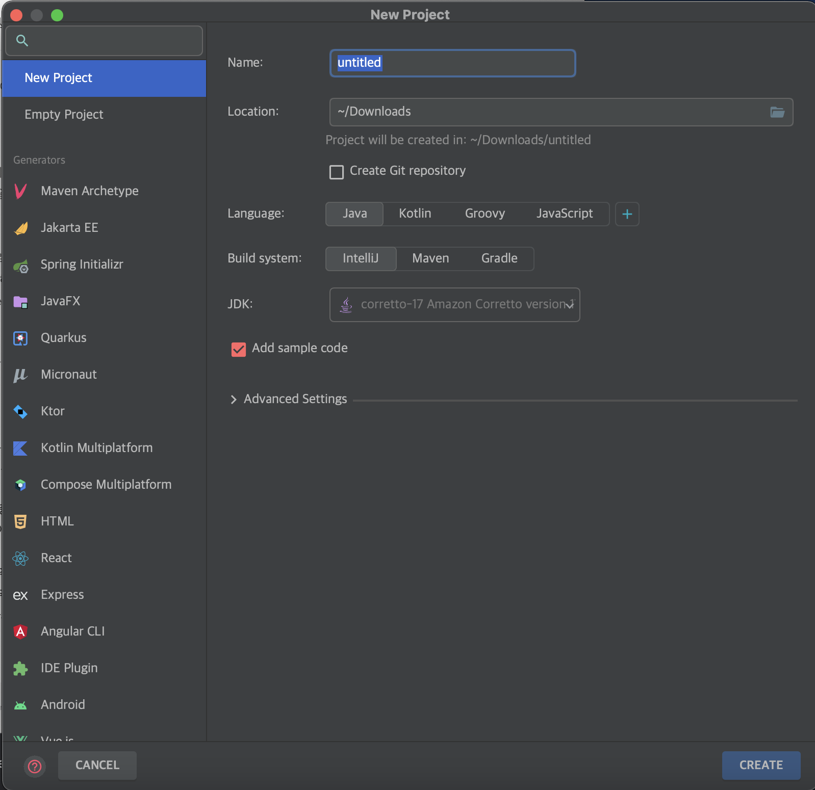 이렇게 파일을 생성할 때 Build System에서 Gradle을 추가하면 안되고, source로 공유를 해야 하는데 파일로 추가하고 또 그걸 push, pull하고,,,, 🤓