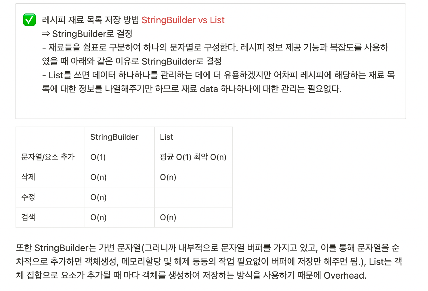 만약 재료명과 재료 수량을 "+" 연산을 통해 결합하여 저장한다면 😱 절망적인 성능을 가져다 줄 것이다...........