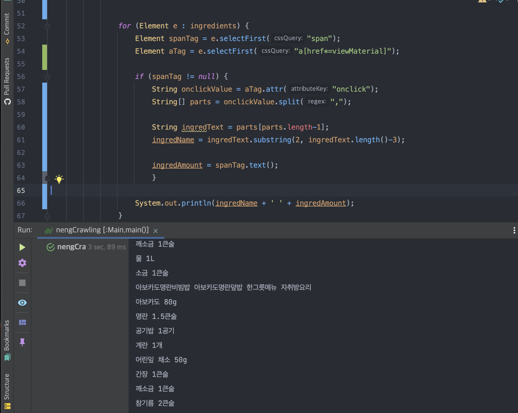 처음에는 크롤링값: [재료이름, 재료수량]을 Map으로 묶어서 리스트로 저장을 하려고 했다.