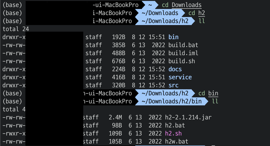 예를 들면 Downloads 폴더에 다운이 되었다고 하면 다음 과정을 통해 h2에 접근할 수 있다.