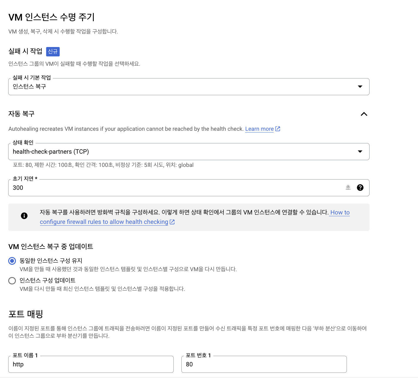 그리고 필요한 네트워크 태그들을 설정하는데, firewall-allow-health-check 관련해서는 따로 트러블 슈팅 포스팅을 첨부할 것이다.