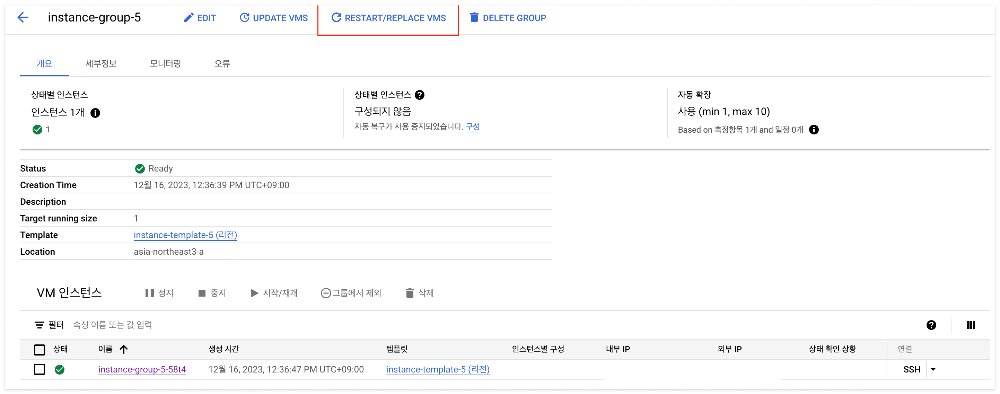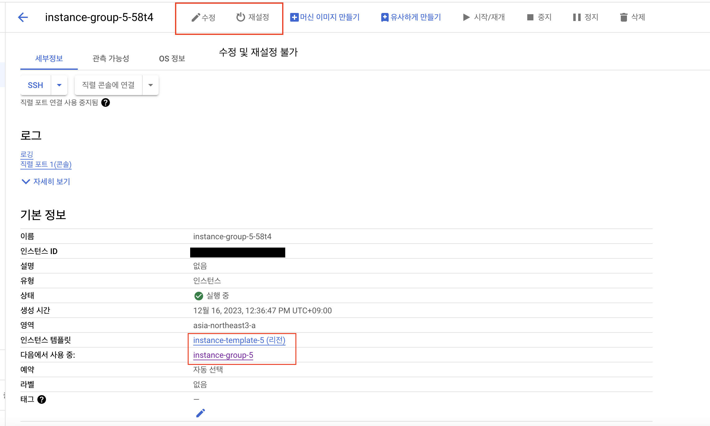 인스턴스 그룹을 통해 서버를 세팅하게 되면 실제로 간단하게 서버 하나 띄우고 사용했던 것과 달리, VM 인스턴스를 관리해 주는 관리자가 생기는 것이기 때문에 VM 인스턴스에 직접적으로 접근 불가능하다.