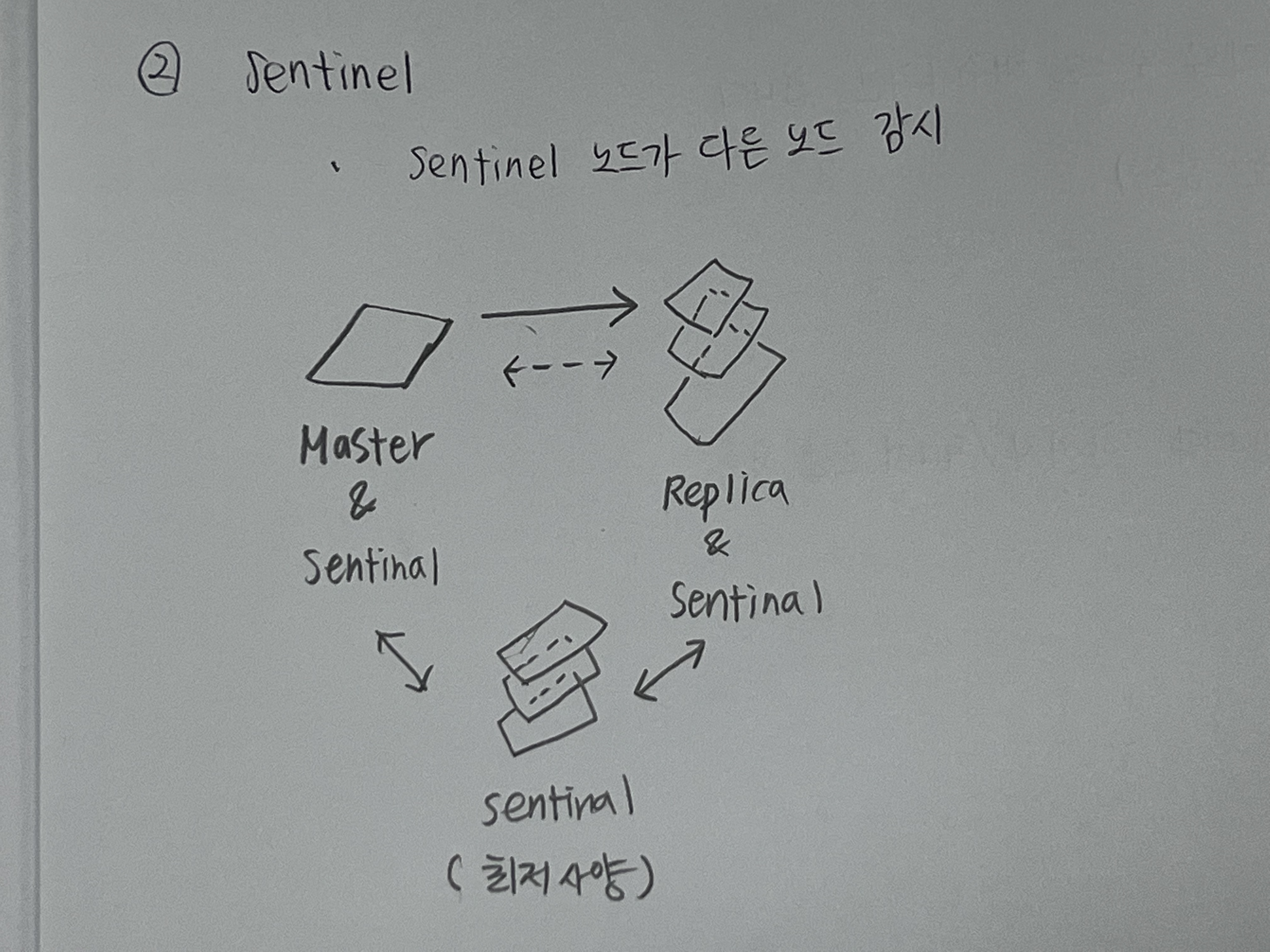 Seninel이라는 노드를 따로 하나 만들어서, 이 노드를 통해 다른 노드를 감시하는 방식이다. (HA - High Availablity 구성) 마스터가 비정상일 경우 자동으로 페일오버를 감지하고, 서비스 장애 상황을 막기 위해서 남아있는 복제본을 마스터 노드로 변경한다.