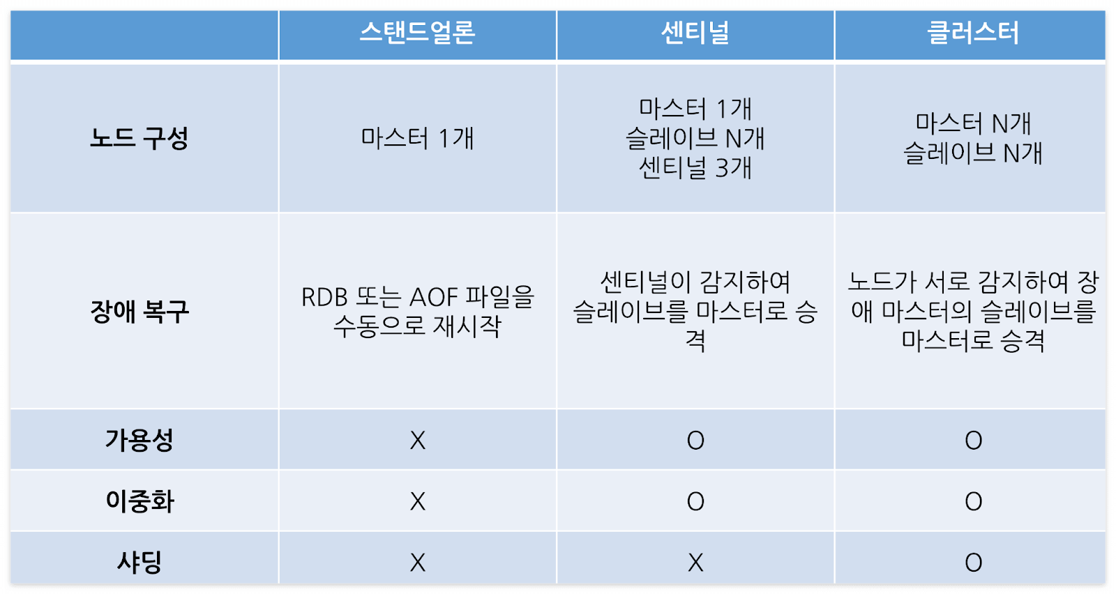 중점을 두고 봐야할 점은 "Redis 서버의 Failover 상황시, 어떤 가용성을 제공하는가?"이다.