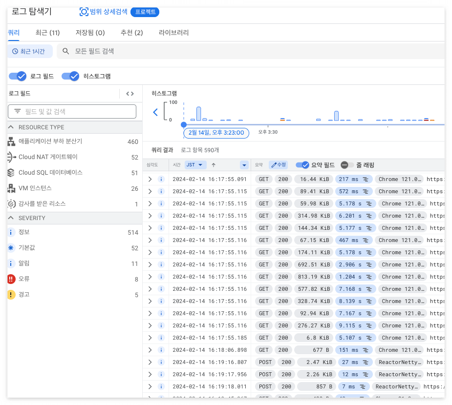 Cloud Logging을 보면 정말 많은 로그들이 실시간으로 쌓이고 있다.