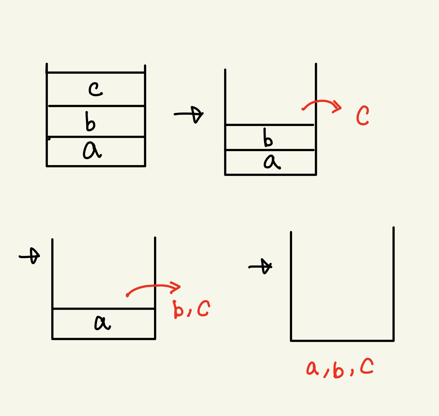 위 그림과 같이 먼저 들어간 a보다 c가 먼저 나오는 구조다.