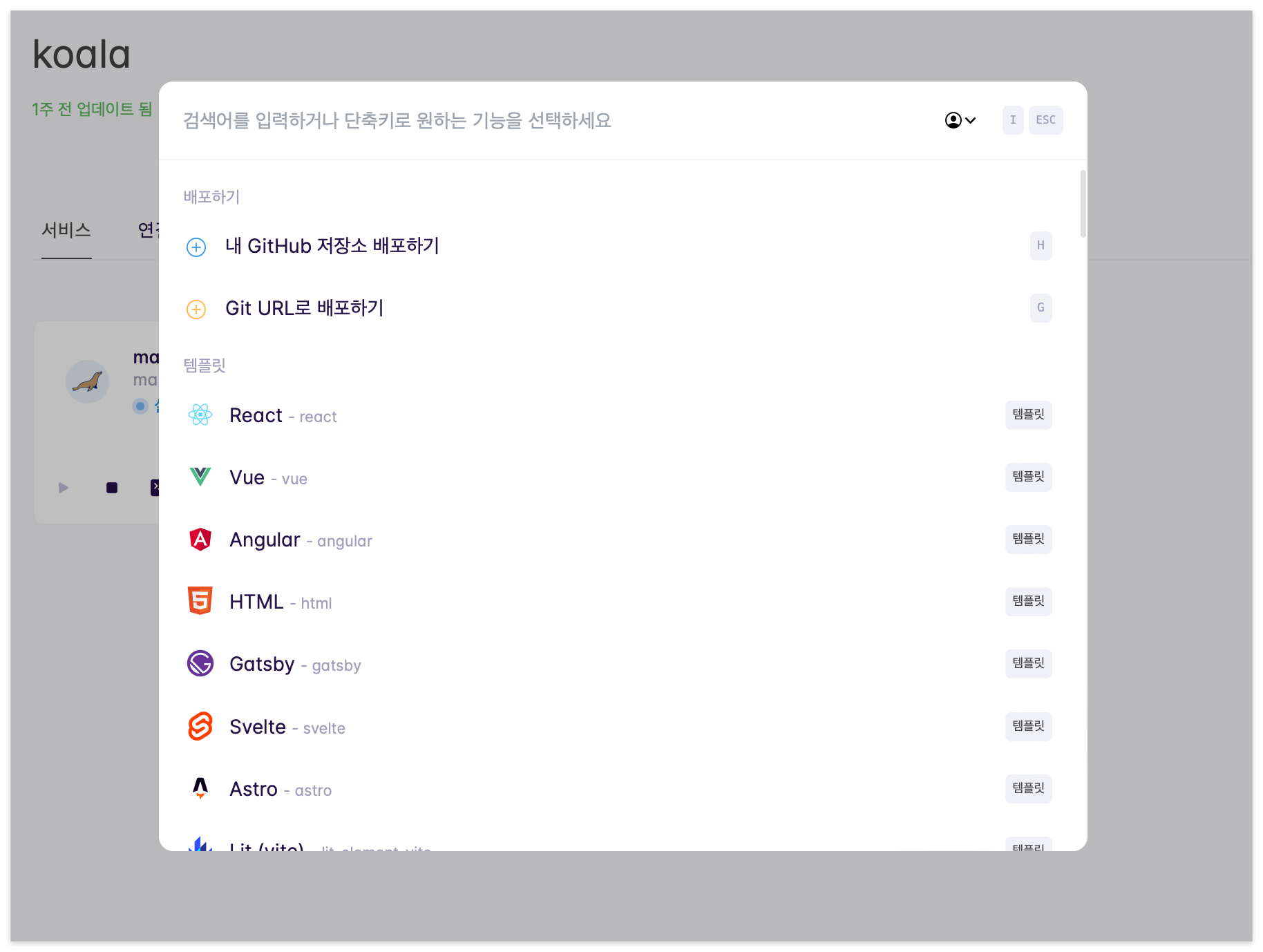 초기 세팅이라고 해도 사실 별 거 없다. 여러 서비스를 호스팅할 프로젝트(나의 경우 화면상 보이는 koala)를 하나 생성해주고 워크스페이스처럼 사용하면 된다.
