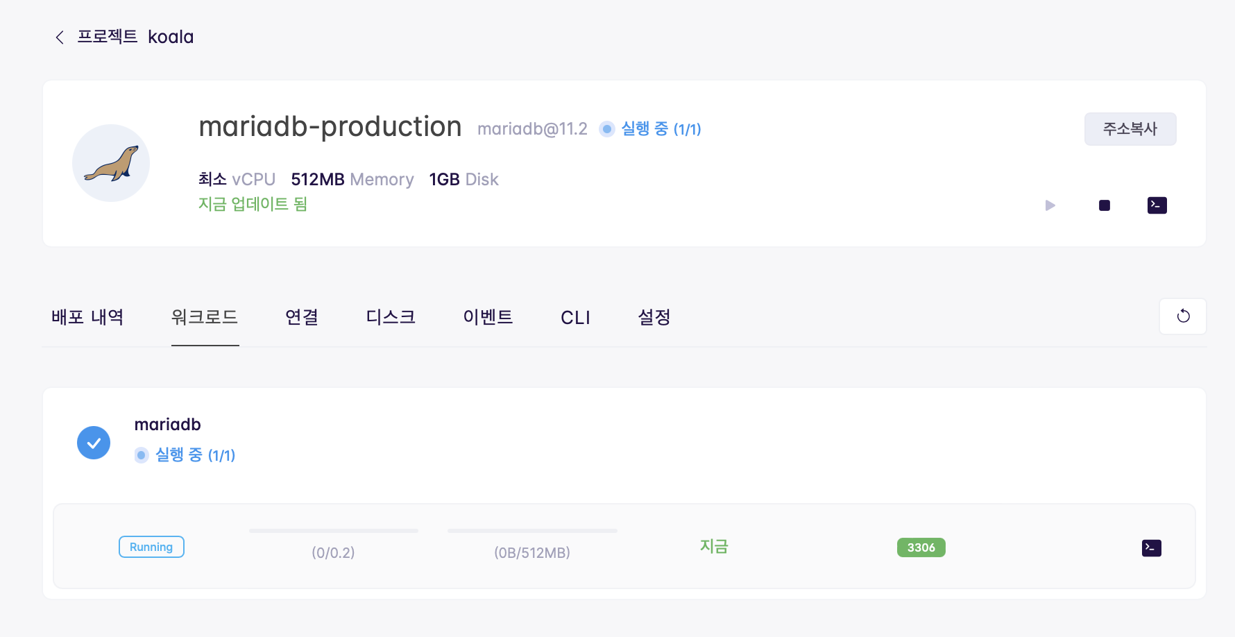 모든 설정을 마치고 DB의 워크로드를 확인해보면 정상적으로 실행 중임을 확인할 수 있다.