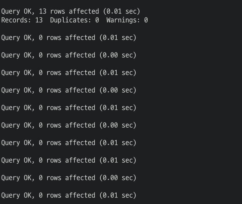 사용할 데이터베이스를 use [database명]; 으로 ON 해주고, source [로컬경로/백업파일명.sql] 명령어를 통해 백업 파일을 실행해주자.