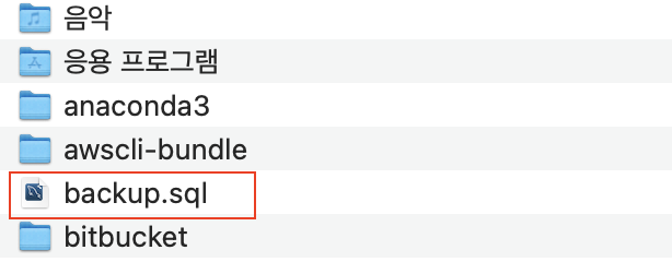 해당 명령어를 실행하면 내 로컬 컴퓨터 루트 경로에 sql 파일이 하나 생겨있음을 확인할 수 있다.