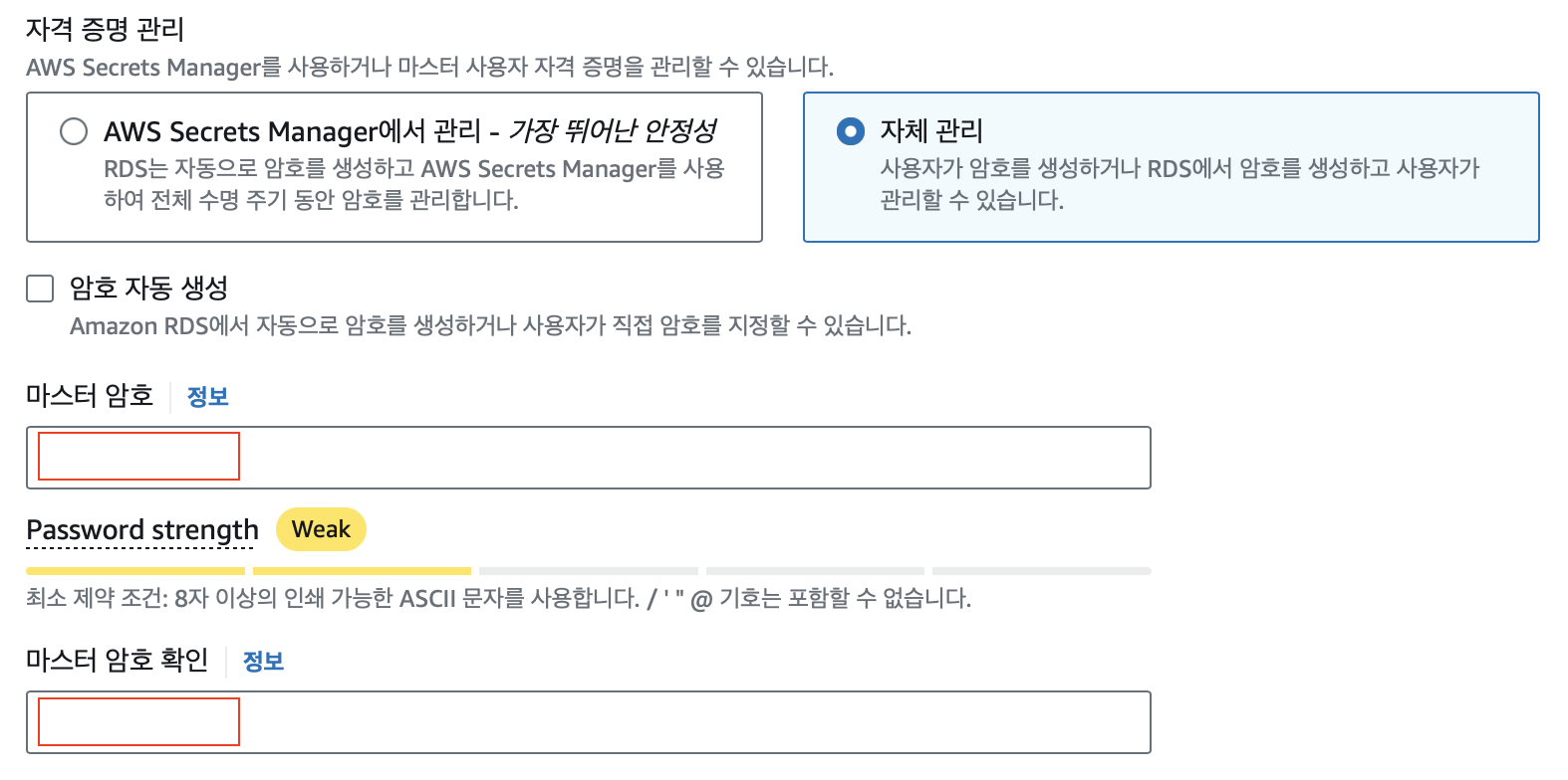 - AWS DB 정보(RDS명, DB명, 마스터유저, 마스터비밀번호 등)