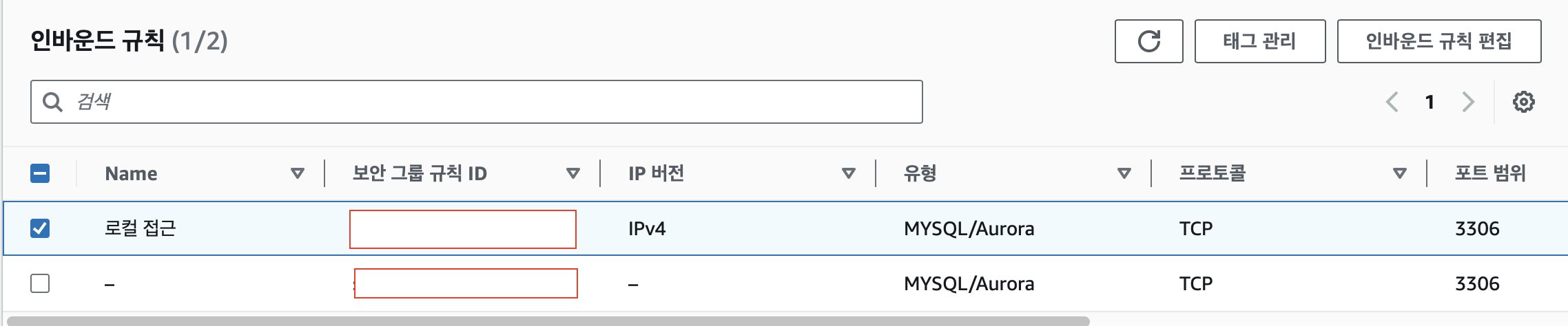 DB에 보안그룹이 설정되어있다면, 나의 IP가 접근 가능하도록 정보를 등록해준다.