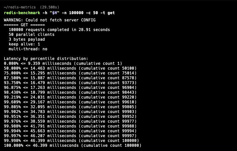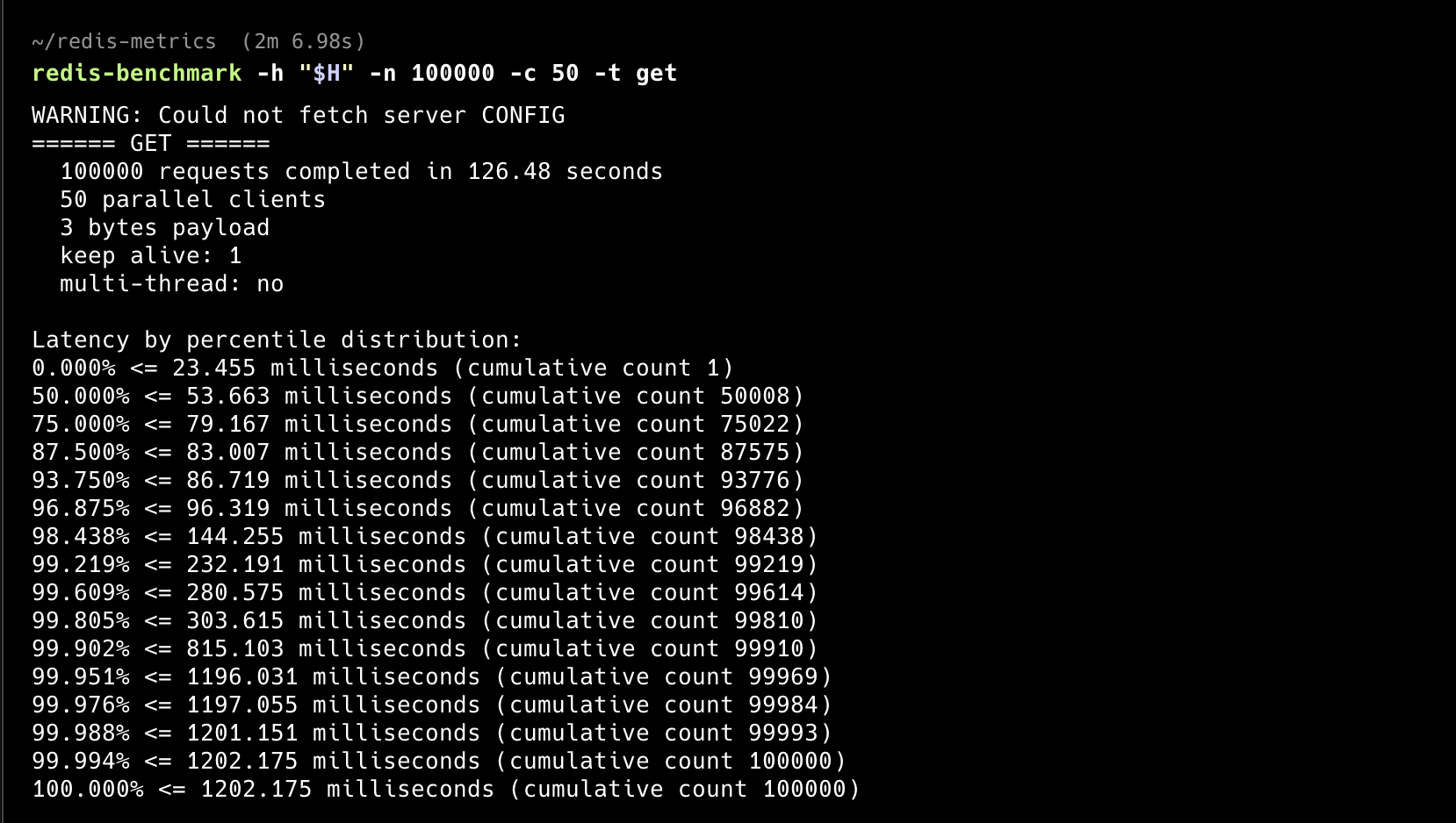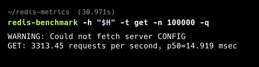 redis-benchmark -h "$H" -n 100000 -c 50 -t get