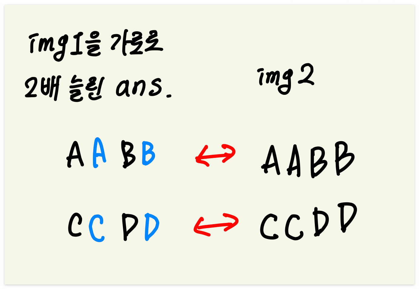 또한, img2(Nx2M 그림)와 img1을 늘린 ans를 한 줄씩 비교해야 하기 때문에